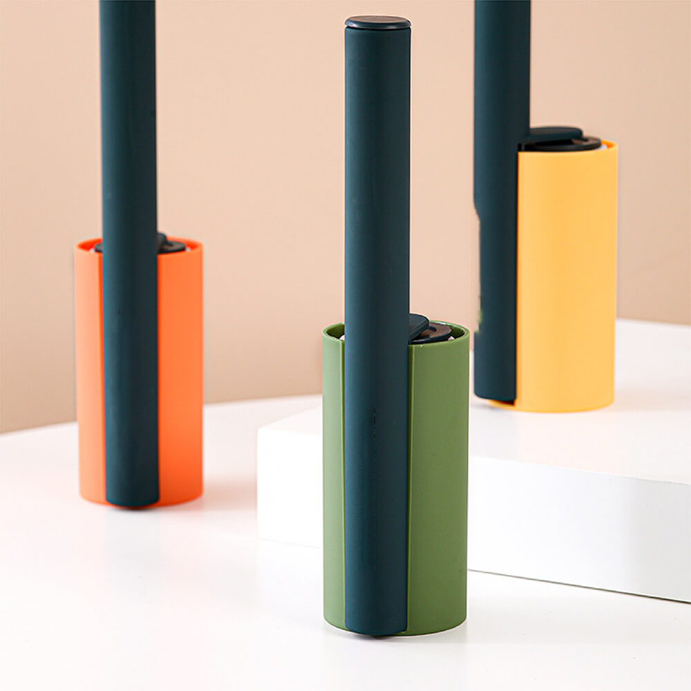 FunnyFuzzy Cylinder Vertical Pet Sticky Hair Lint Roller can clean up pet hair or debris from your clothes and furniture just with one roll, allowing you not to worry about messy stray hairs everywhere. The full-wrap housing design also prevents wasting clean sticky sheets.