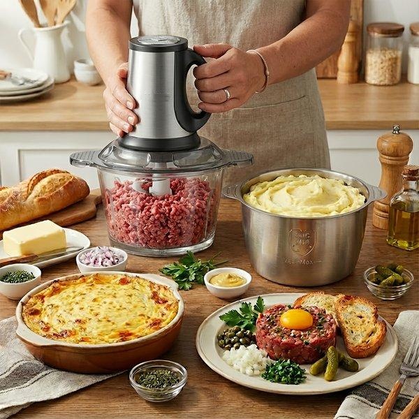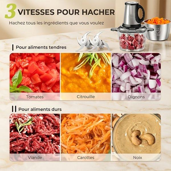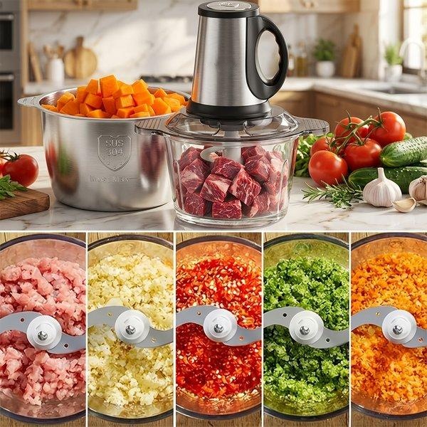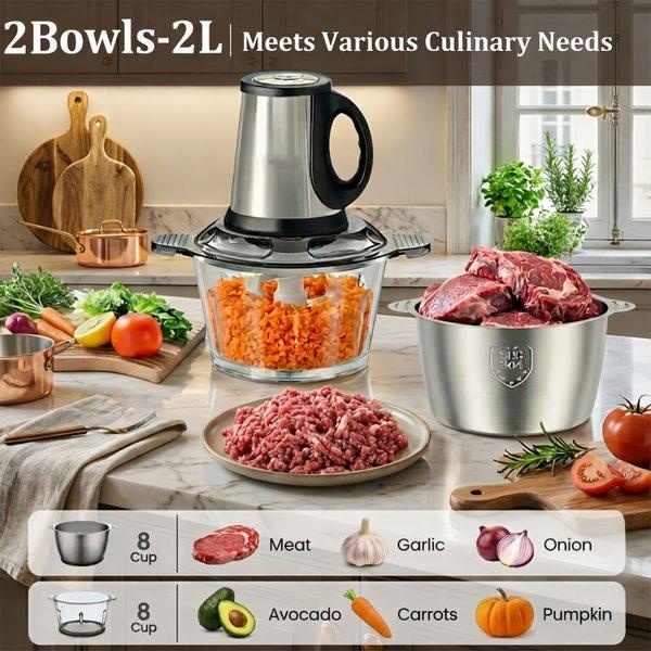 SPZTJK 2L Baby Food Processor & Meat Grinder - 2 Free Dishwasher-Safe Blades & Bowls, Pure Copper Motor for Homemade Puree/Nuts/Meat, BPA-Free & Quiet Design for Family Cooking